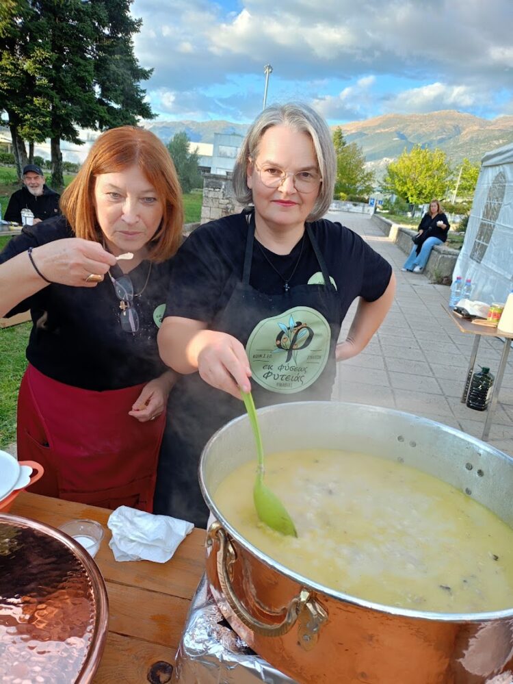 Tα μέλη μας μαγείρεψαν και σέρβιραν στους επισκέπτες ΤΡΑΧΑΝΟΤΟ με ΓΙΔΑ και ΚΑΣΤΑΝΟΣΟΥΠΑ αξιοποιώντας μερικές από τις τοπικές πρώτες ύλες και την παράδοση της ΦΥΤΕΙΑΣ!