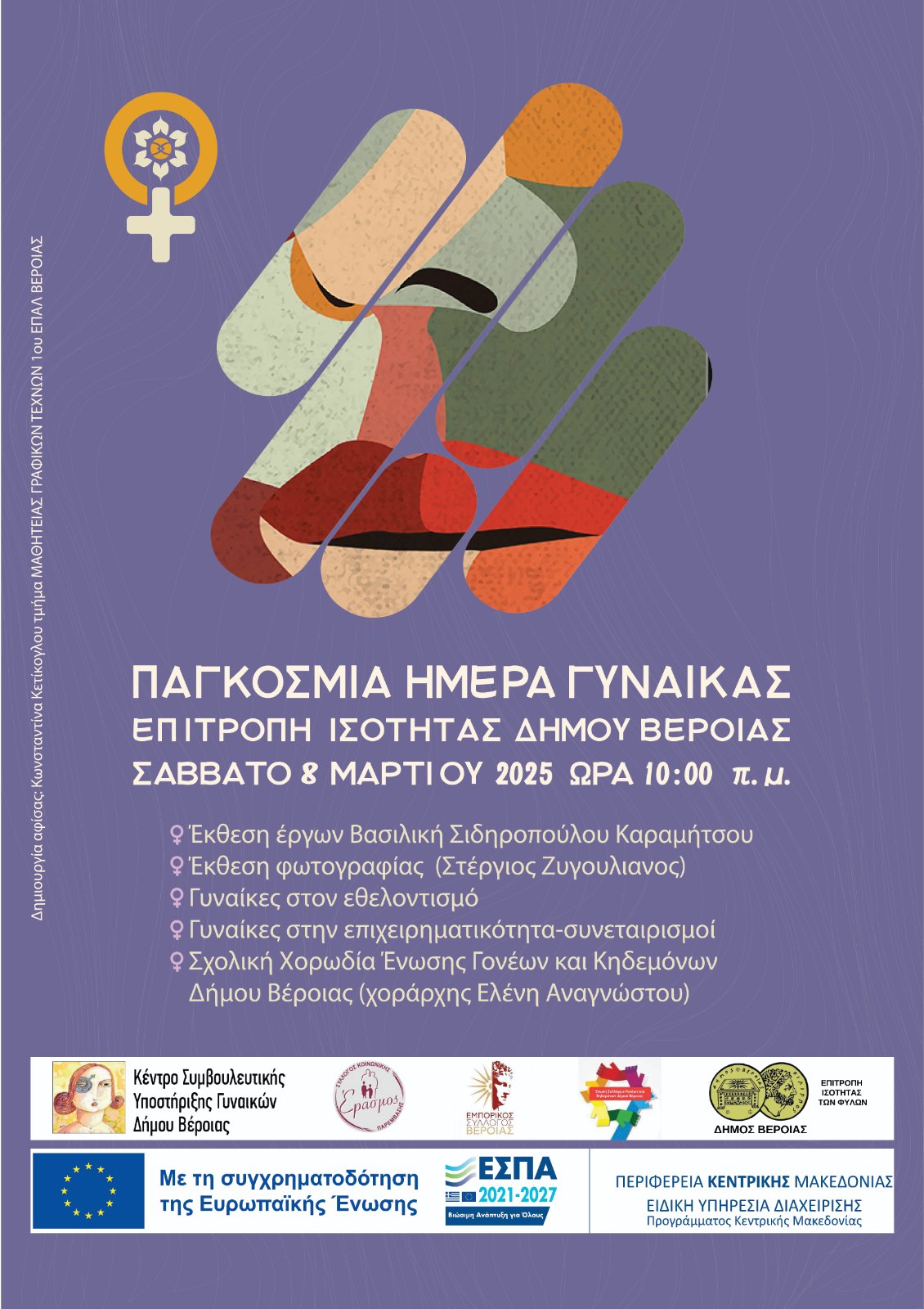 8 Μαρτίου Παγκόσμια Ημέρα της Γυναίκας και ο συνεταιρισμός μας προσκλήθηκε να συμμετάσχει στις εκδηλώσεις που διοργάνωσε η Επιτροπή Ισότητας του Δήμου Βέροιας για το 2025 με Έκθεση ζωγραφικών ΄Εργων της κας Βασιλικής Σιδηροπούλου,΄Εκθεση φωτογραφίας με θέμα τις γυναίκες της περιοχής στο πέρασμα των χρόνων του κ.Στέργιου Ζυγουλιάνου,Ομάδες γυναικών στον εθελοντισμό και Γυναίκες στην επιχειρηματικότητα όπως εμείς.